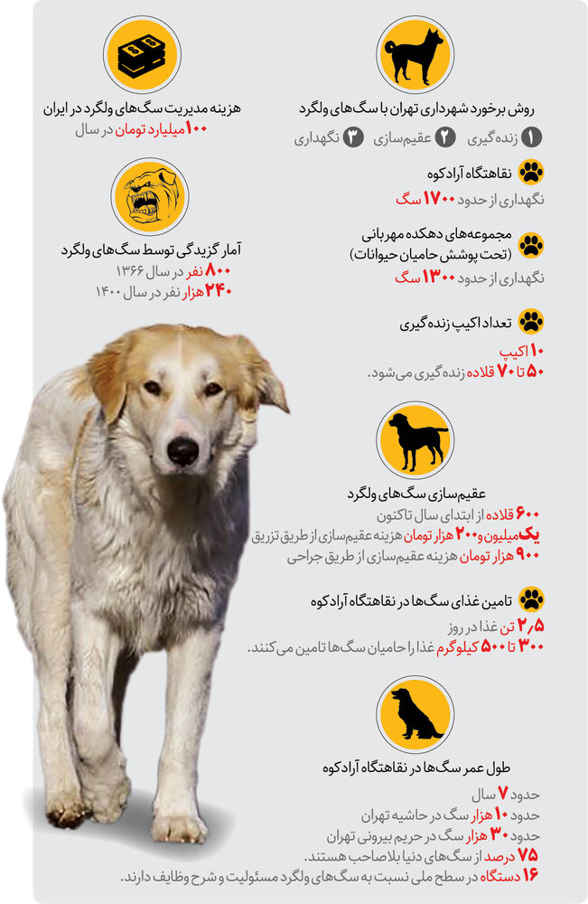 به‌گفته مدیرعامل سازمان مدیریت پسماند، اکنون وضعیت سگ‌های ولگرد در شهر تهران به نقطه بحرانی رسیده است: «در واقع دستورالعمل‌ها به‌تنهایی پاسخگو نیست؛ ضمن اینکه مسئله دوستداران حیوانات و حامیان سگ نیز کار را پیچیده‌تر کرده است.»