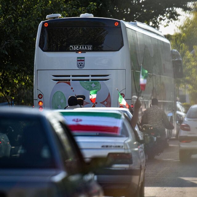 عدهای از مردم اتوبوس تیمملی را تا فرودگاه امام خمینی همراهی کردند.