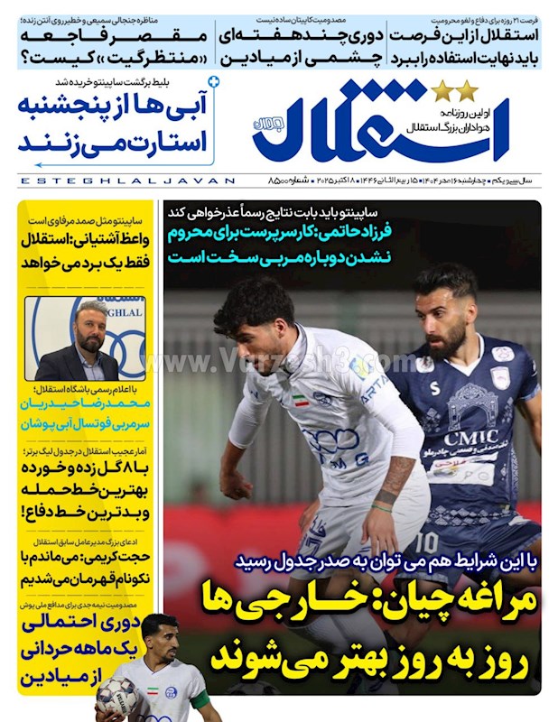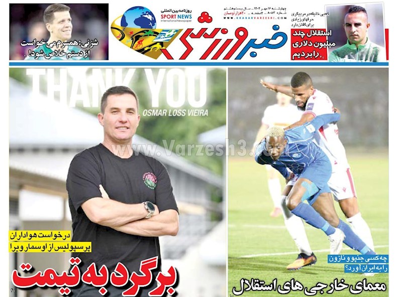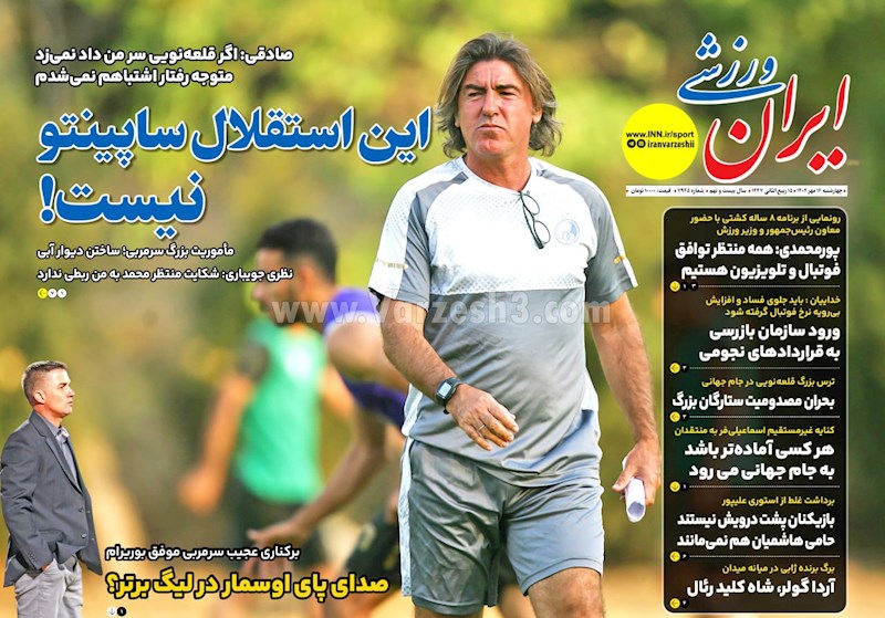 نگاهی به صفحه نخست مهمترین روزنامه های ورزشی ایران در روز چهارشنبه ۱۶ مهر ماه ۱۴۰۴