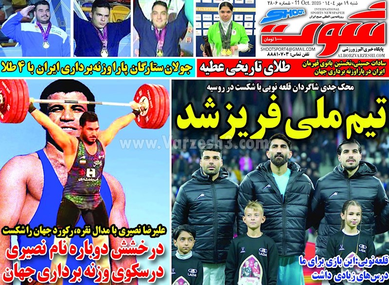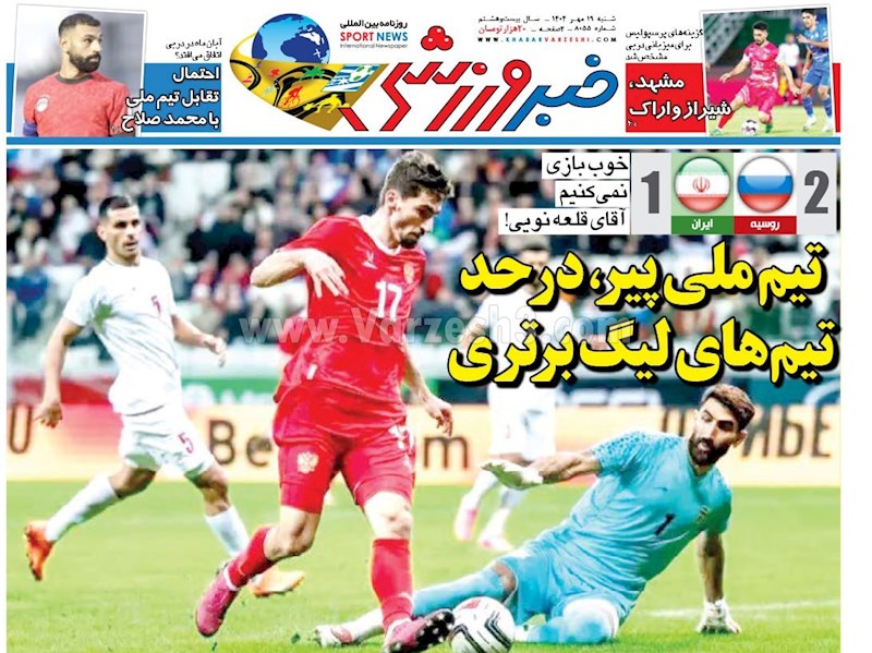 نگاهی به صفحه نخست مهمترین روزنامه های ورزشی ایران در روز شنبه ۱۹ مهر ماه ۱۴۰۴