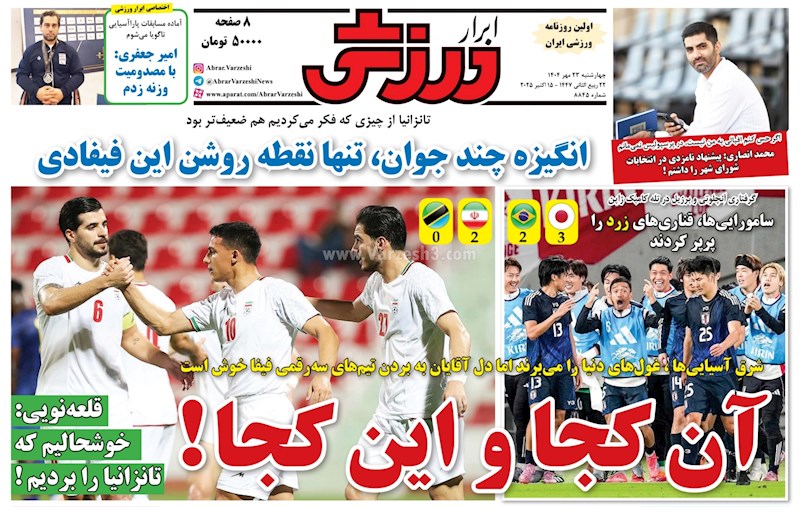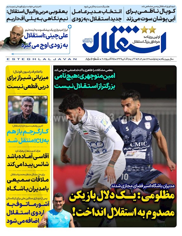 نگاهی به صفحه نخست مهمترین روزنامه های ورزشی ایران در روز چهارشنبه ۲۳ مهر ماه ۱۴۰۴
