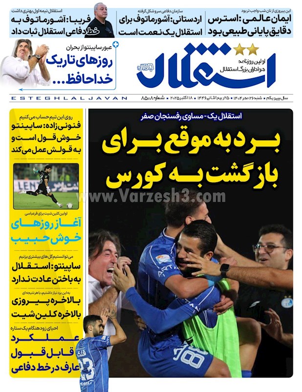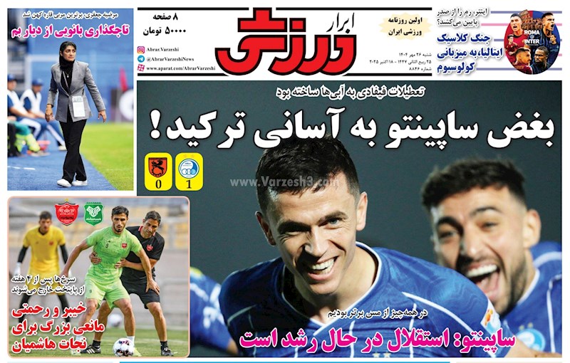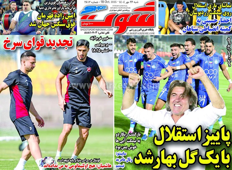 نگاهی به صفحه نخست مهمترین روزنامه های ورزشی ایران در روز شنبه ۲۶ مهر ماه ۱۴۰۴