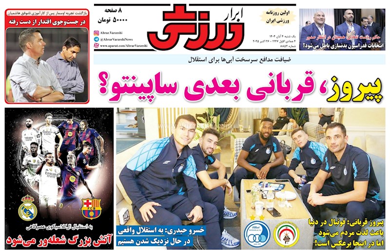 نگاهی به صفحه نخست مهمترین روزنامه های ورزشی ایران در روز یکشنبه ۴ آبان ماه ۱۴۰۴