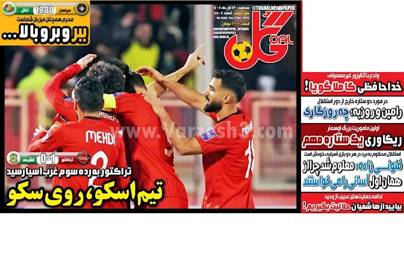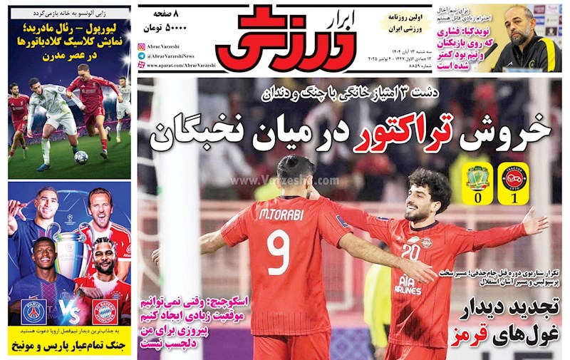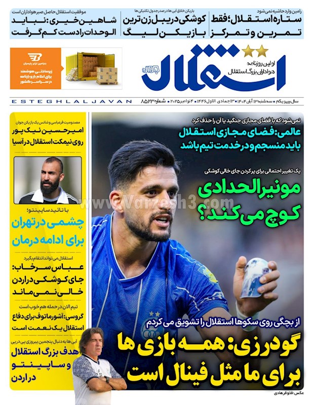 نگاهی به صفحه نخست مهمترین روزنامه های ورزشی ایران در روز سه شنبه ۱۳ آبان ماه ۱۴۰۴