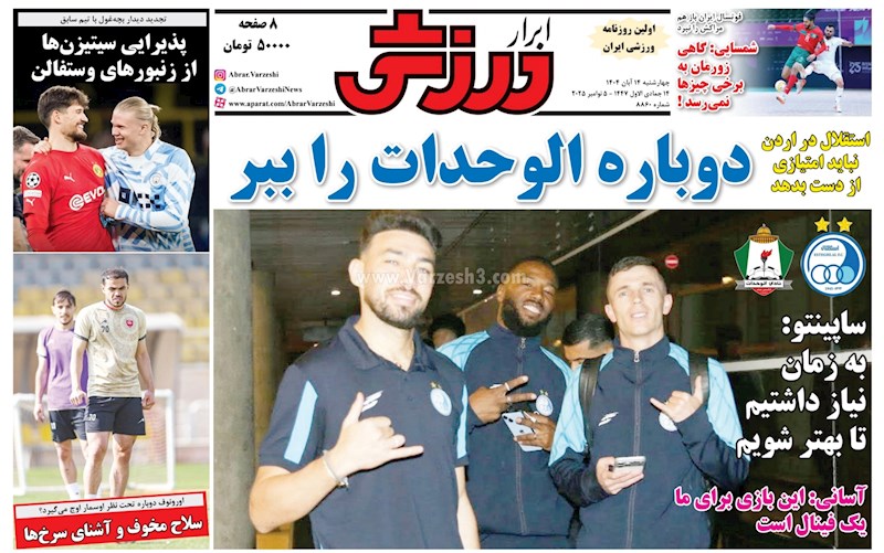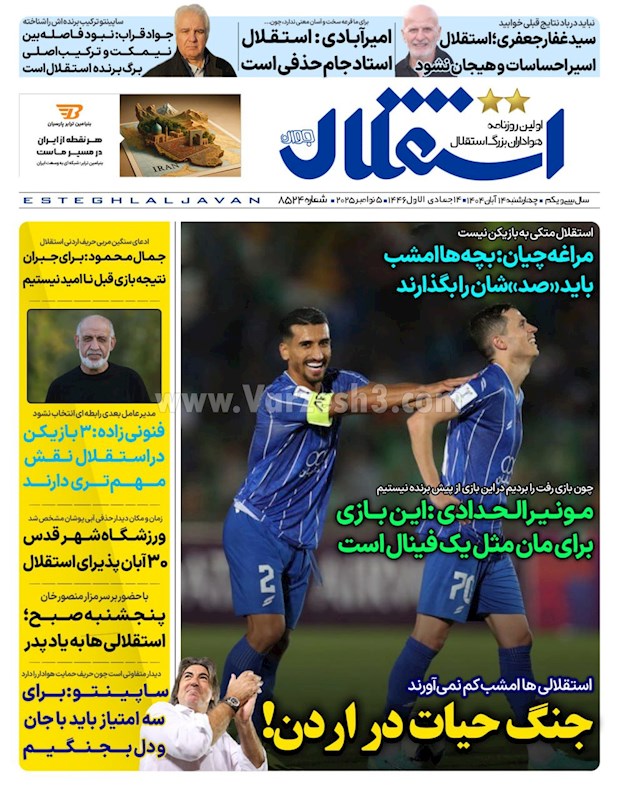 نگاهی به صفحه نخست مهمترین روزنامه های ورزشی ایران در روز چهارشنبه ۱۴ آبان ماه ۱۴۰۴