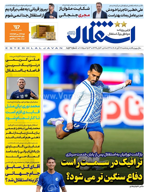 نگاهی به صفحه نخست مهمترین روزنامه های ورزشی ایران در روز پنجشنبه ۲۲ آبان ماه ۱۴۰۴