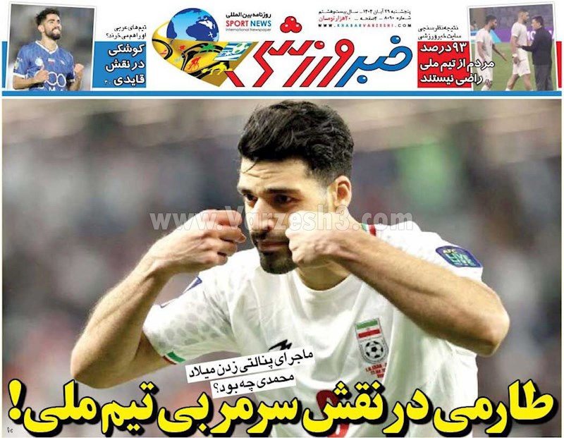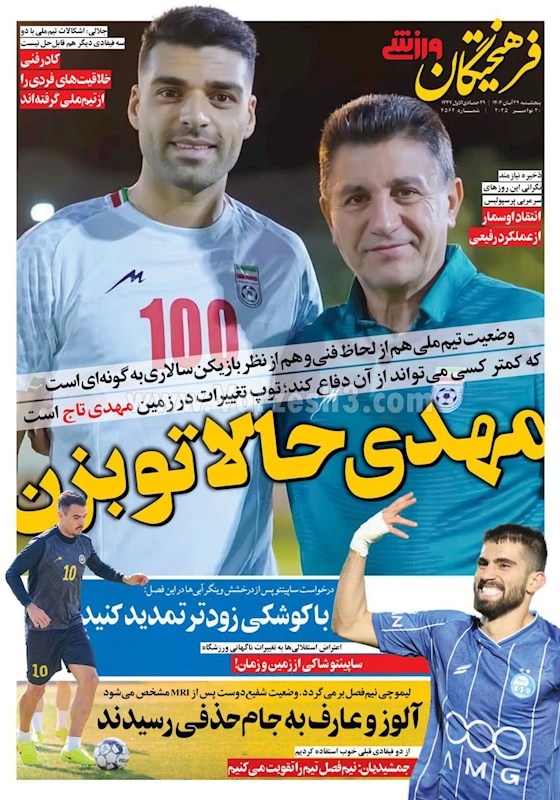 نگاهی به صفحه نخست مهمترین روزنامه های ورزشی ایران در روز پنجشنبه ۲۹ آبان ماه ۱۴۰۴