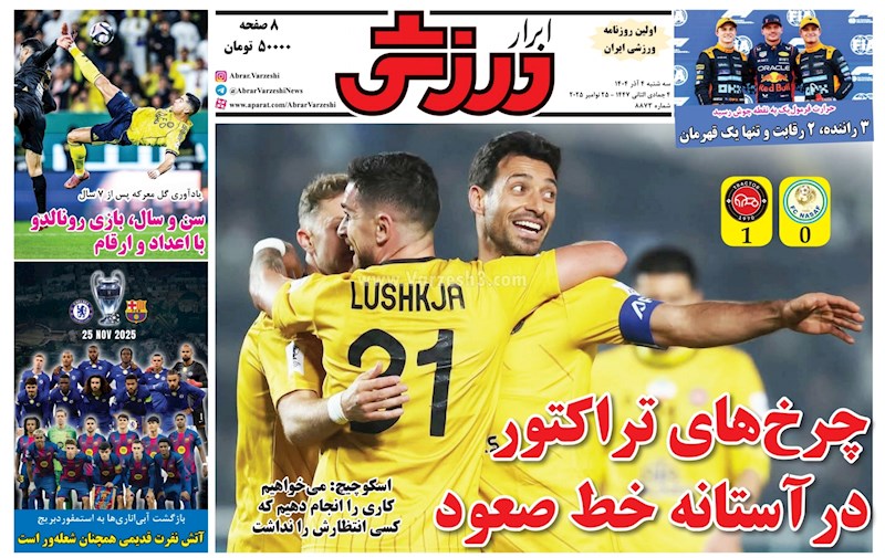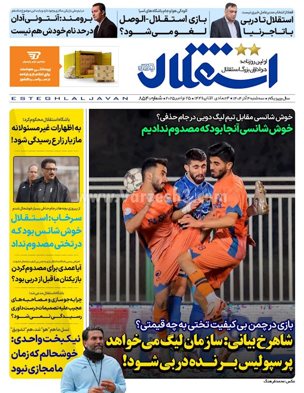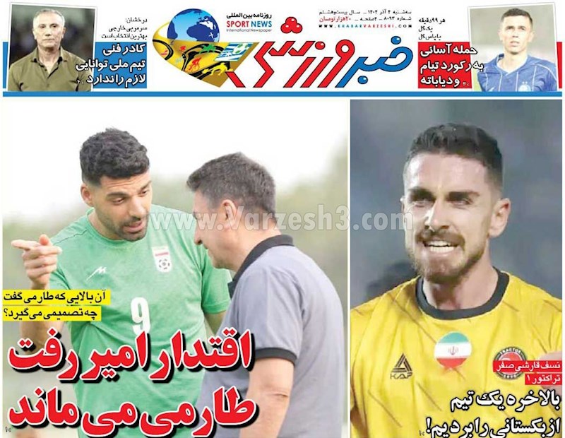 نگاهی به صفحه نخست مهمترین روزنامه های ورزشی ایران در روز سه شنبه ۴ آذر ماه ۱۴۰۴