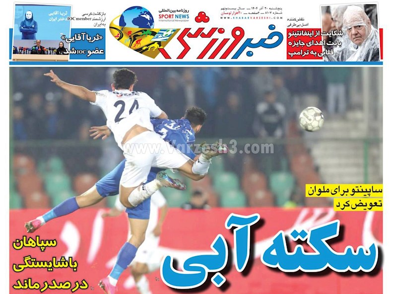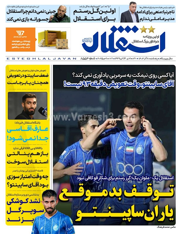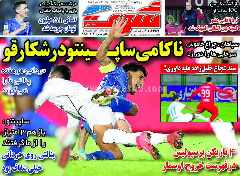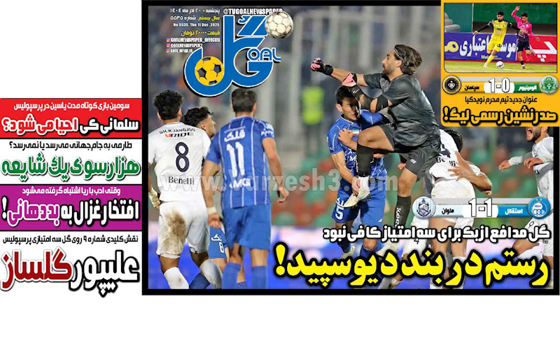 نگاهی به صفحه نخست مهمترین روزنامه های ورزشی ایران در روز پنجشنبه ۲۰ آذدر ماه ۱۴۰۴
