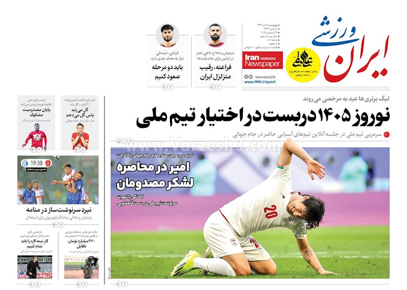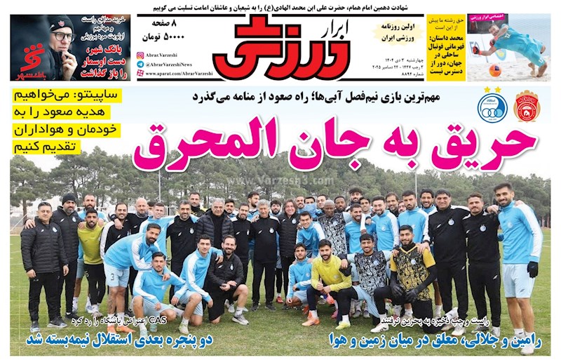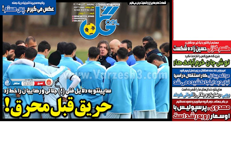نگاهی به صفحه نخست مهمترین روزنامه های ورزشی ایران در روز چهارشنبه ۳ دی ماه ۱۴۰۴