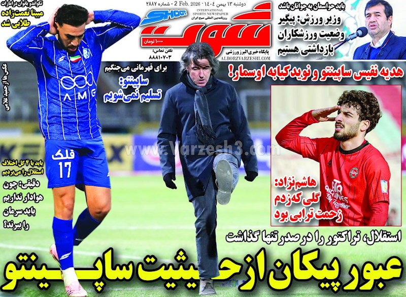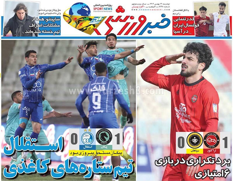 نگاهی به صفحه نخست مهمترین روزنامه های ورزشی ایران در روز دوشنبه ۱۳ بهمن ماه ۱۴۰۴