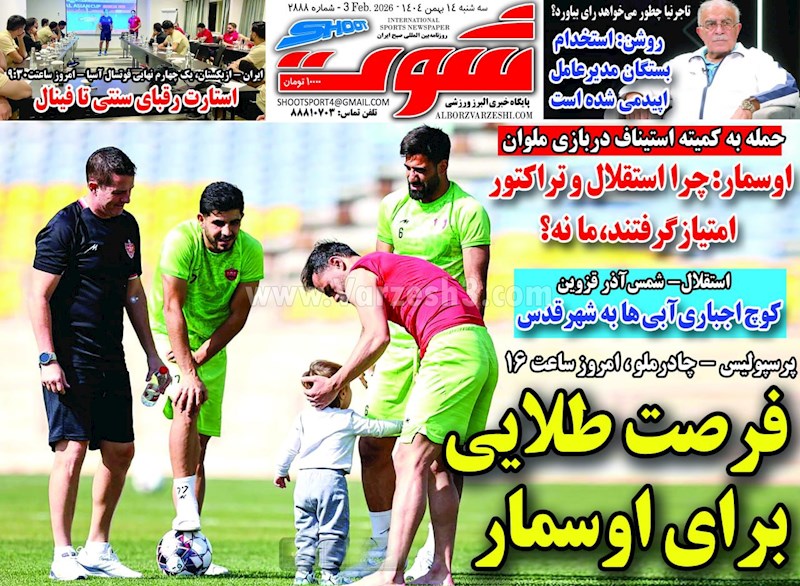 نگاهی به صفحه نخست مهمترین روزنامه های ورزشی ایران در روز سه شنبه ۱۴ بهمن ماه ۱۴۰۴