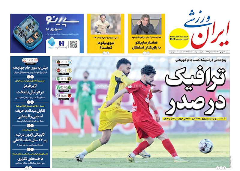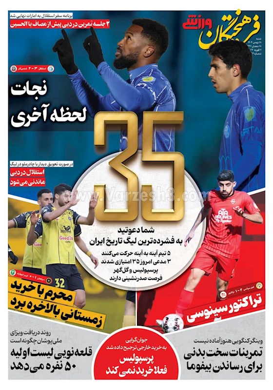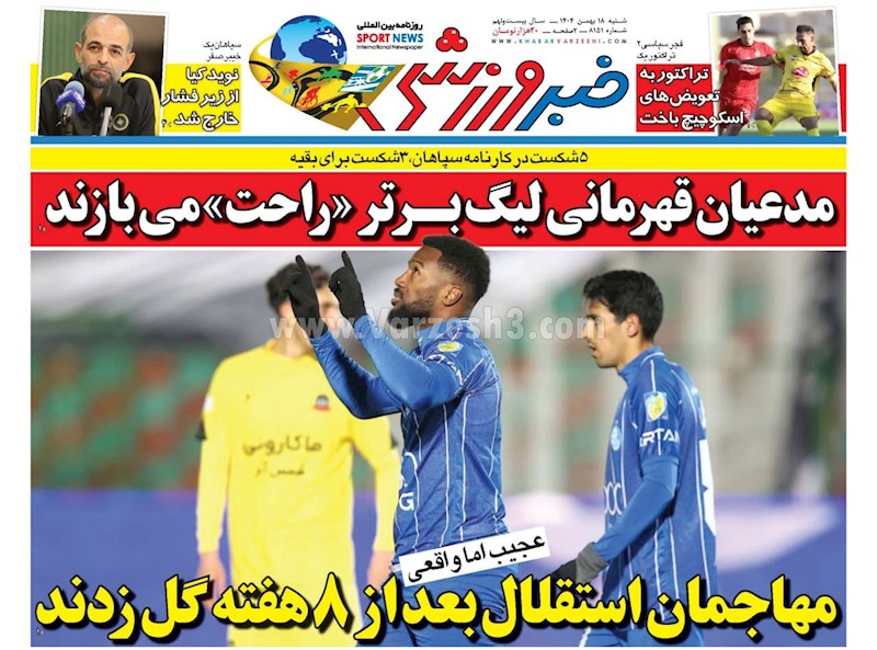 روزنامه های ورزشی شنبه ۱۸ بهمن ماه