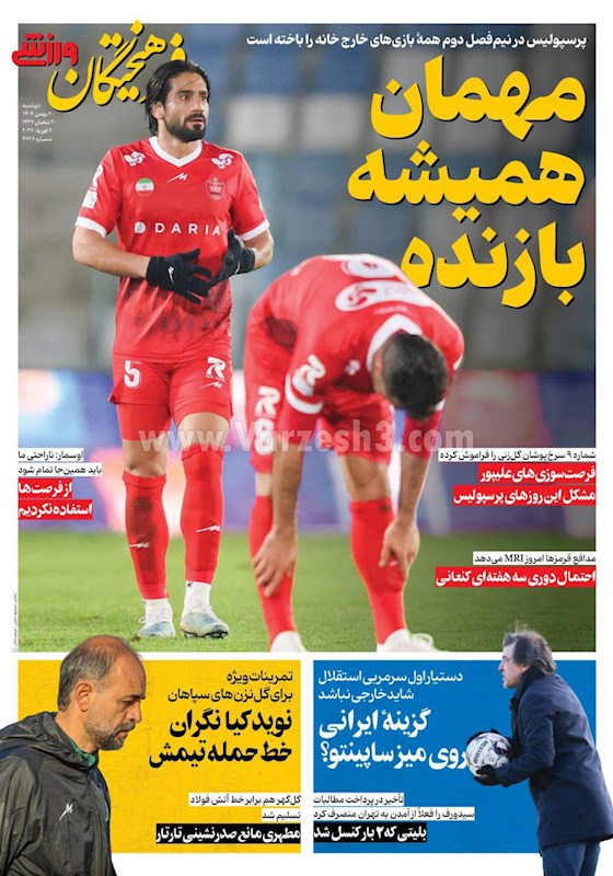 نگاهی به صفحه نخست مهمترین روزنامه های ورزشی ایران در روز دوشنبه ۲۰ بهمن کاه ۱۴۰۴