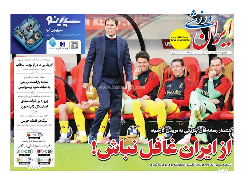 نگاهی به صفحه نخست مهمترین روزنامه های ورزشی ایران در روز شنبه ۲۵ بهمن ماه ۱۴۰۴
