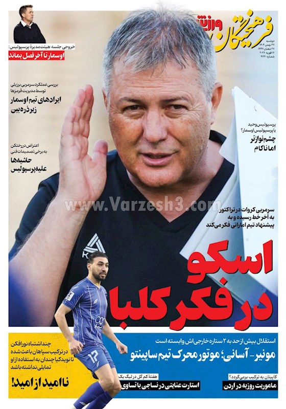 نگاهی به صفحه نخست مهمترین روزنامه های ورزشی ایران در روز دوشنبه ۲۷ بهمن ماه ۱۴۰۴