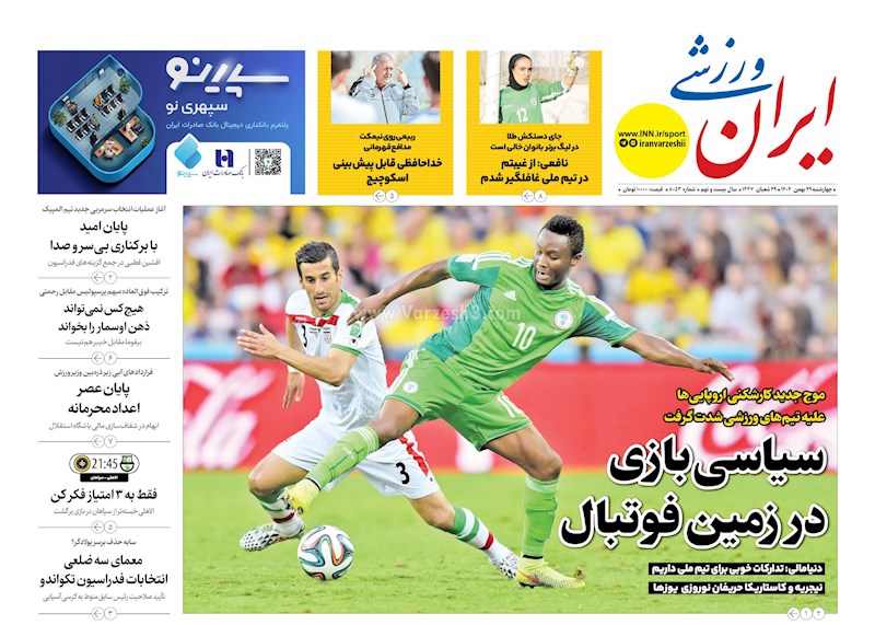 روزنامه های ورزشی چهارشنبه ۲۹ بهمن ماه