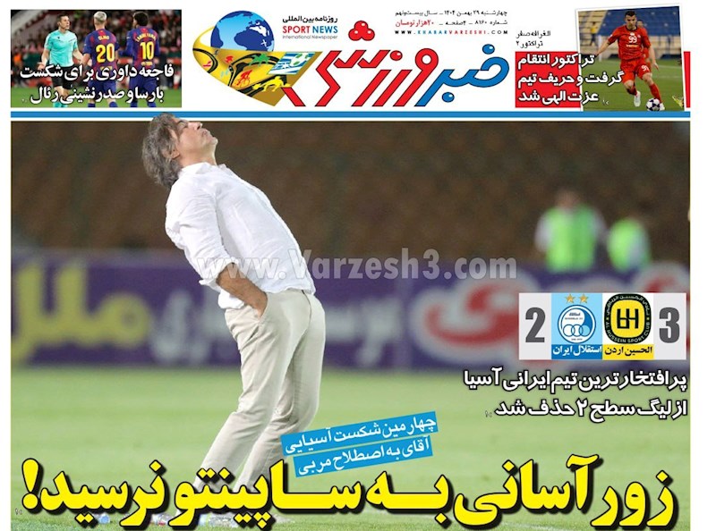 نگاهی به صفحه نخست مهمترین روزنامه های ورزشی ایران در روز چهارشنبه ۲۹ بهمن ماه ۱۴۰۴