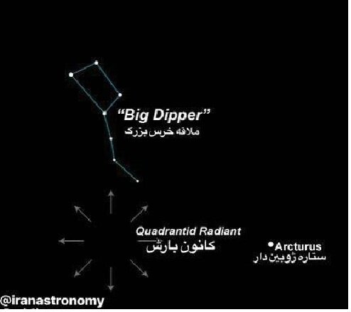 عتیقی اضافه کرد: میتوان گفت که این بارش شهابی به نوعی به ساکنان نیمکره شمالی زمین تعلق دارد؛ چرا که کانون بارش تقریبا در نقطه شمالی کره آسمان قرار داشته و شهابهای زیادی از این بارش را ساکنان نیمکره جنوبی نمیتوانند مشاهده کنند.