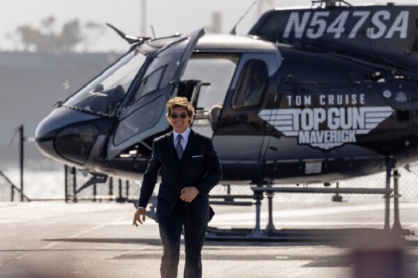 همبازیهای تام کروز رویکردی زمینیتر داشتند، اما کروز که مجوز خلبانی دارد، با هلیکوپتر خودش از راه رسید، روی ناو فرود آمد و بعد از راه رفتن روی فرش قرمزی که آنجا پهن شده بود به شوخی گفت اگر میخواست با اوبر از راه برسد خیلی لذت نمیبرد. اما این تنها بخشی از مراسم بود چون حضار در پیشنمایش فیلم همچنین ناظر پرواز جتهای جنگنده در آسمان، رژه سربازهای یونیفرم پوشیده و مجموعه بازیگران پرستاره فیلم بودند.
